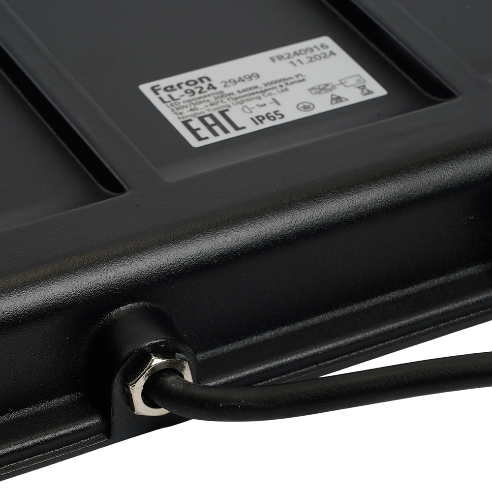 Прожектор светодиодный многоматричный с монтажным креплением на кронштейн, (ДО) FERON LL-924, 200W, 6400К (холодный белый), 230V/50Гц, 20000Lm, IP65, угол рассеивания 120°, 224*SMD2835, раб.t -40°C - +40°C, цвет чёрный, корпус алюминий литой под давлением + стекло, 407*307*34 мм