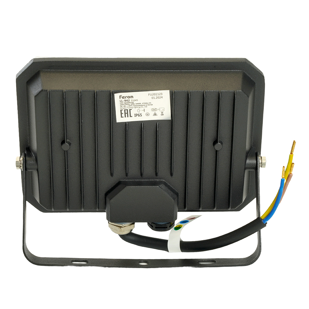 Прожектор светодиодный многоматричный с монтажным креплением на кронштейн, (ДО) FERON LL-942 , 50W, 6400К (холодный белый), 230V/50Гц, 4750Lm, IP65, угол рассеивания 120°, 83*SMD2835, раб.t -40°C - +40°C, цвет белый, корпус алюминий, поликарбонат, 140*100*26 мм