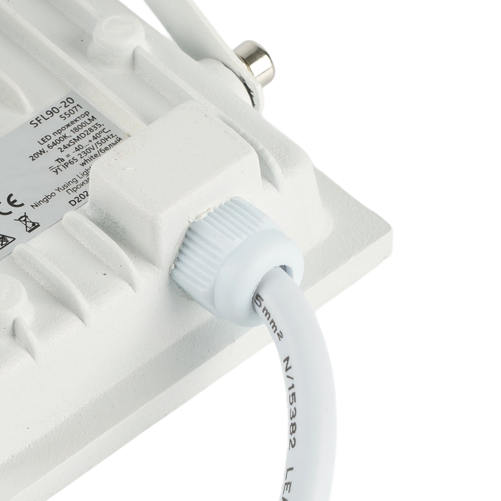 Прожектор светодиодный многоматричный с монтажным креплением на кронштейн, (ДО) SAFFIT SFL90-20, 20W, 6400К (дневной), 230V/50Гц, 1800Lm, IP65, угол рассеивания 120°, 20*SMD2835, раб.t -40°C - +40°C, цвет белый, корпус алюминий литой под давлением + стекло, 74*74*25,2 мм