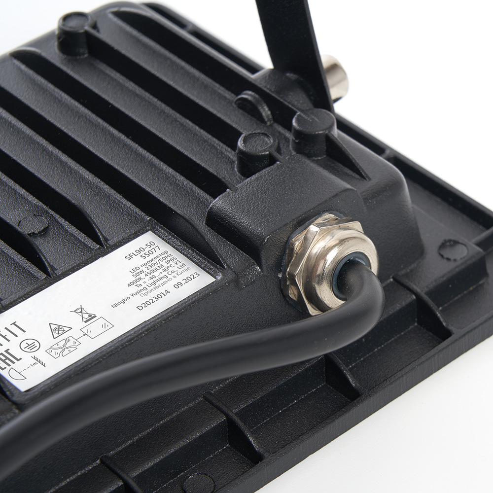 Прожектор светодиодный многоматричный с монтажным креплением на кронштейн, (ДО) SAFFIT SFL90-50, 50W, 4000К (белый), 230V/50Гц, 4500Lm, IP65, угол рассеивания 120°, 48*SMD2835, раб.t -40°C - +40°C, цвет чёрный, корпус алюминий литой под давлением + стекло, 125*110*26 мм