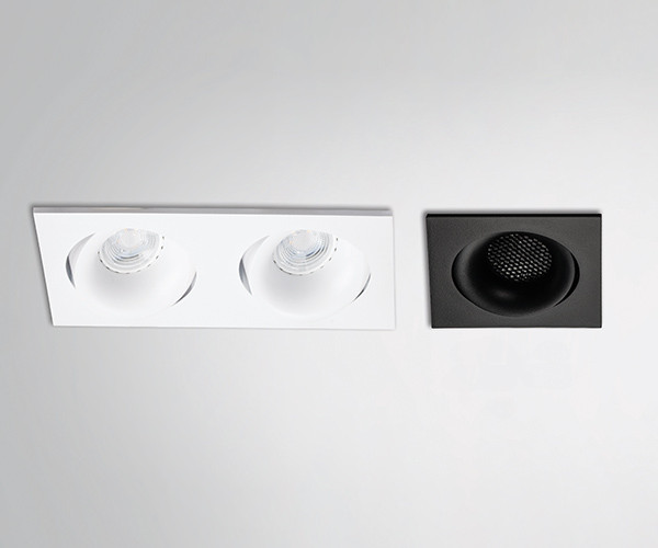 Универсальный поворотный светильник имеют строгую современную форму и создает комфортное освещение в жилых зонах. Конструкция светильников из коллекции DE состоит из двух составных частей: тело светильника, несколько вариантов декоративных рамок. Корпус рамок (одинарные, двойные) представлен в белом, черном и алюминиево-сером цвете. Дополнительно может комплектоваться черным или золотым кольцом и сотовым фильтром. В комплект входит стандартный патрон GU10, что дает возможность подключения как галогенных, так и светодиодных ламп (лампы приобретаются отдельно).