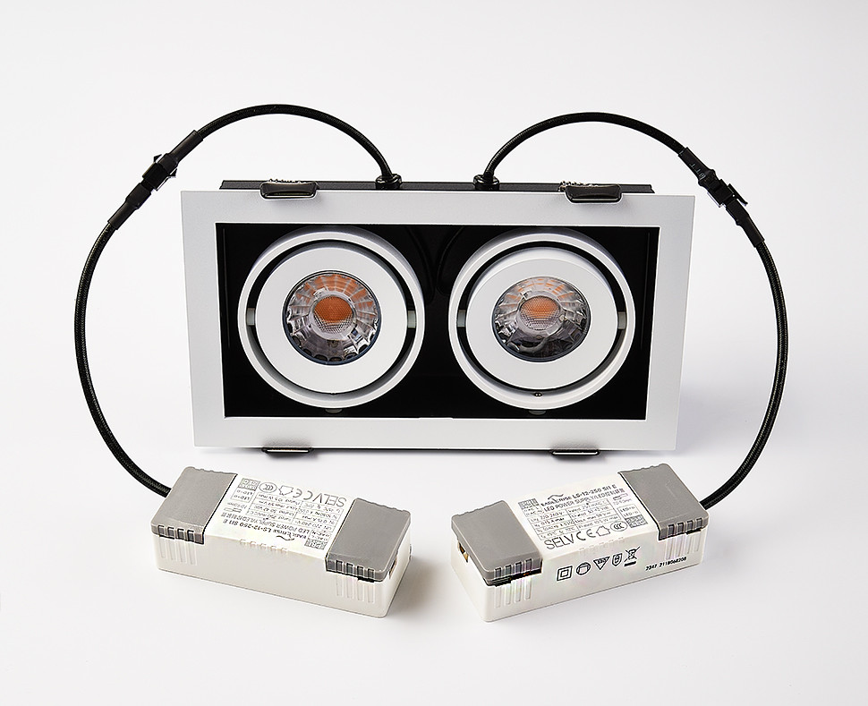 Карданный поворотный встраиваемый светильник с утопленным металлическим корпусом. Подходит для любого типа интерьера, а также для влажных помещений. Драйвер в комплекте.