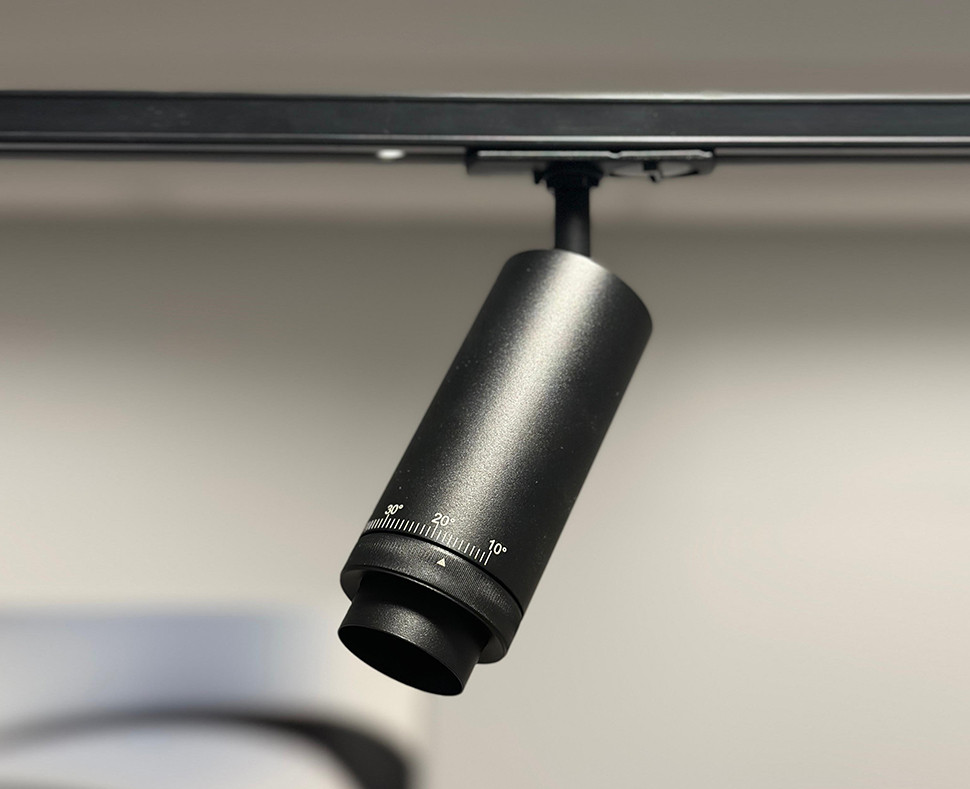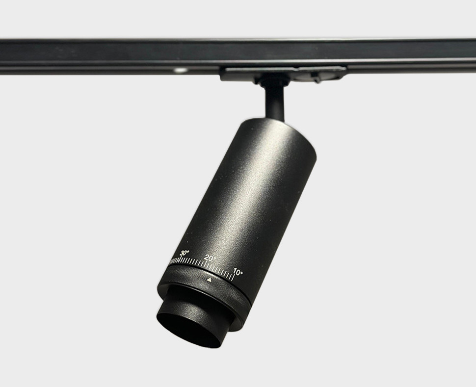 Серия трековых светодиодных светильников представлена моделями в лаконичных цилиндрических корпусах черного цвета. Светильник оснащен линзой, которая меняет угол освещения от 10° до 50°, тем самым обеспечивается необходимая интенсивность освещение в пределах любой выбранной зоны. В комплект входит LED модуль предполагающий использование светильника при 220-240V, с цветовой температурой 3000K.