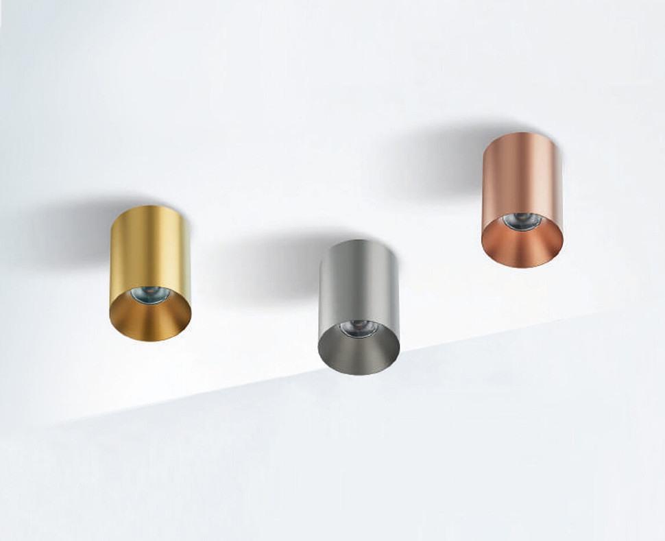 Светильники накладные потолочные со светодиодным модулем. Светильники имеют прочный алюминиевый цилиндрический корпус и формируют четкое световое пятно, что позволяет выделить необходимые зоны освещения. Представлены в 5 цветах: черном, белом, золотом, темное серебро и розовое золото.