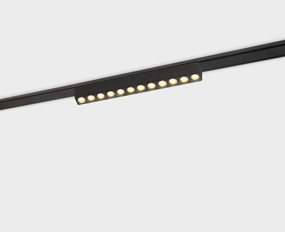 Светодиодный светильник к магнитному треку. Светильник оснащен точечными светодиодами и создает направленный луч света, что позволяет расставлять световые акценты в интерьере. Цветовая температура светильника 3000K.