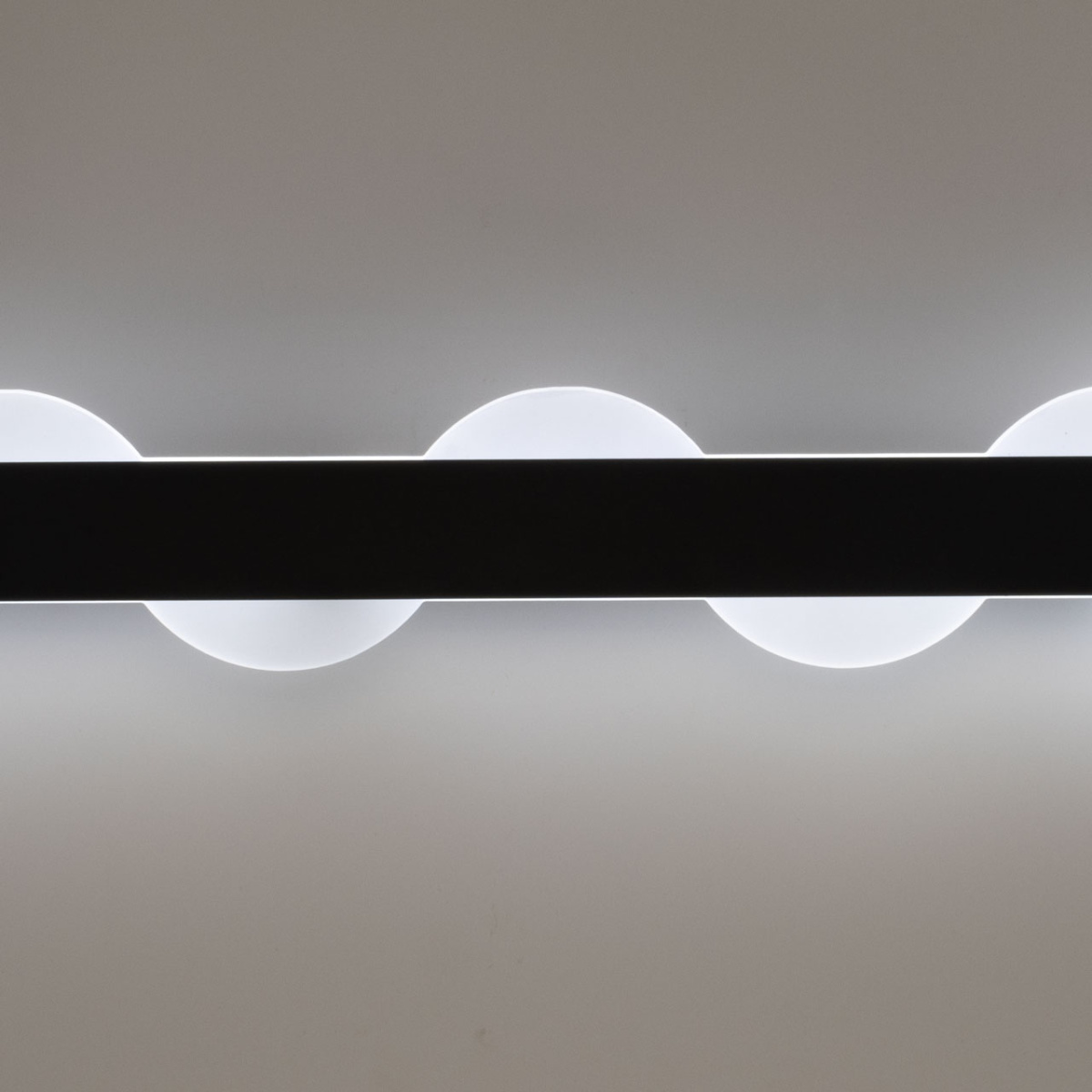 Металлическое основание потолочного светильника окрашено в черный цвет. Светодиодные источники света закрыты матовым акрилом. Светильник декорирован элементами из матового акрила.