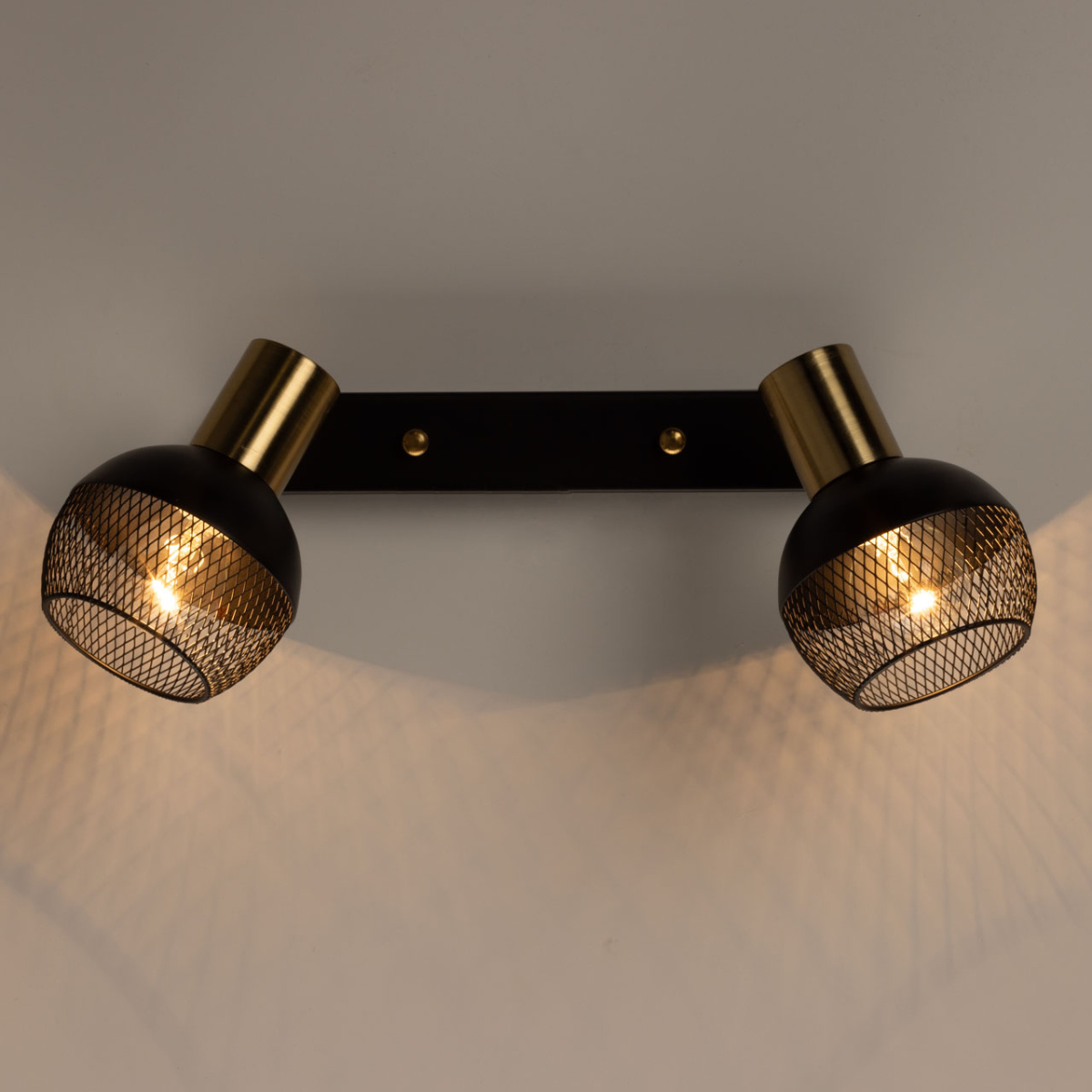 Металлическое основание настенного бра и плафоны окрашены в черный цвет. Отдельные элементы основания гальванизированы в цвет латуни.