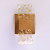 Металлическое основание настенного бра окрашено в матовое золото. Светодиодные источники света закрыты прозрачным акрилом с вкраплениями золотого цвета.