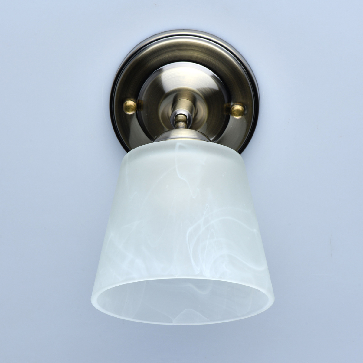 Основание светильника выполнено из металла и гальванизировано в цвет античной бронзы. Светильник декорирован плафонами, выполненными из алебастрового стекла.