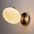 Металлический корпус настенного бра гальванизирован в цвет античной бронзы. Бра декорировано стеклянным плафоном белого цвета в форме продолговатой сферы.