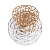 Металлическое основание настенного бра окрашено в матовый золотой цвет. Вертикальное бра декорировано округлыми элементами неправильной формы из фактурного прозрачного стекли и из металла, окрашенного в цвет основания.