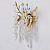 Основание настенного бра выполнено по технологии художественного литья из сплава алюминия с цинком и гальванизировано в цвет золота. Настенное бра декорировано гроздьями из белого матового стекла.