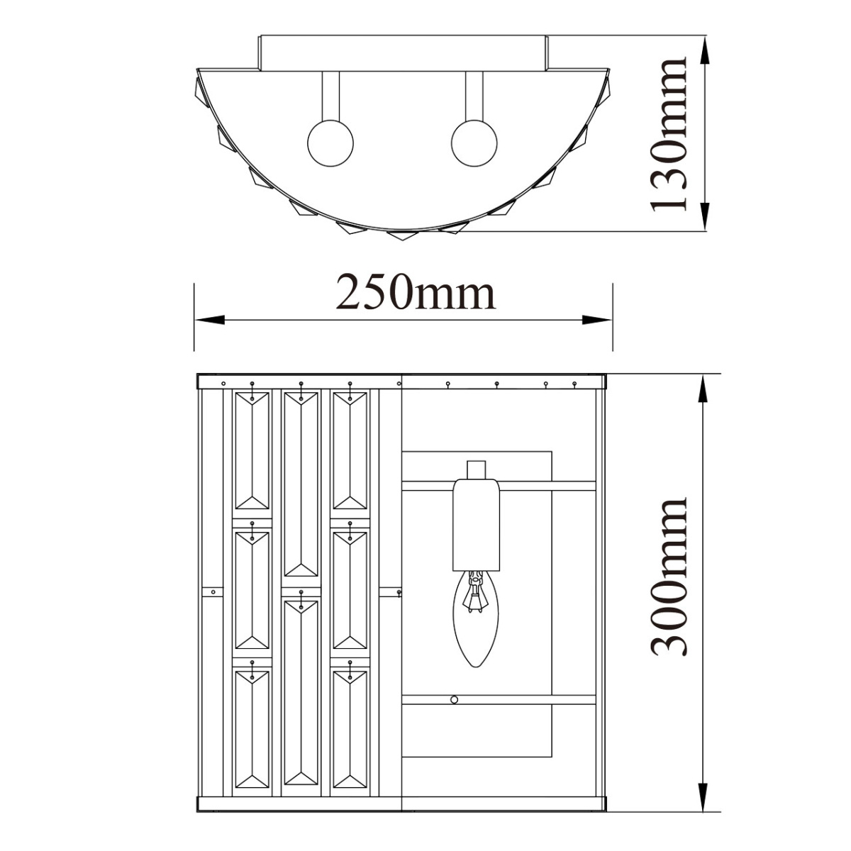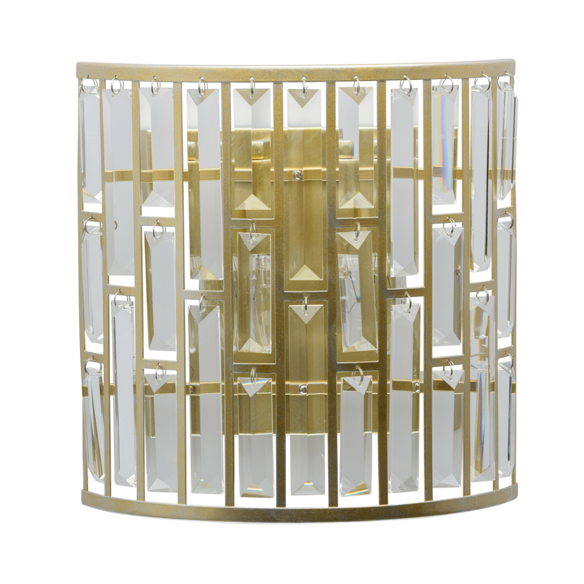 Основание бра выполнено из металла и окрашено по технологии двойного окрашивания, основной слой - серебро, декоративный слой - перламутровое золото.Декор: прозрачный хрусталь прямоугольной формы.