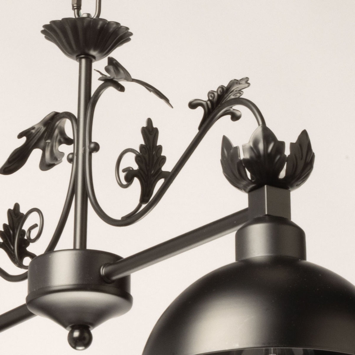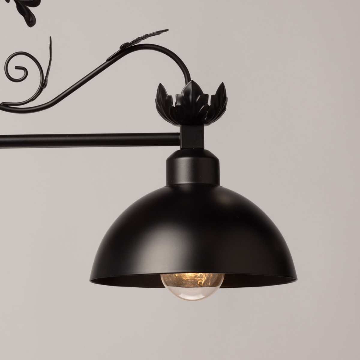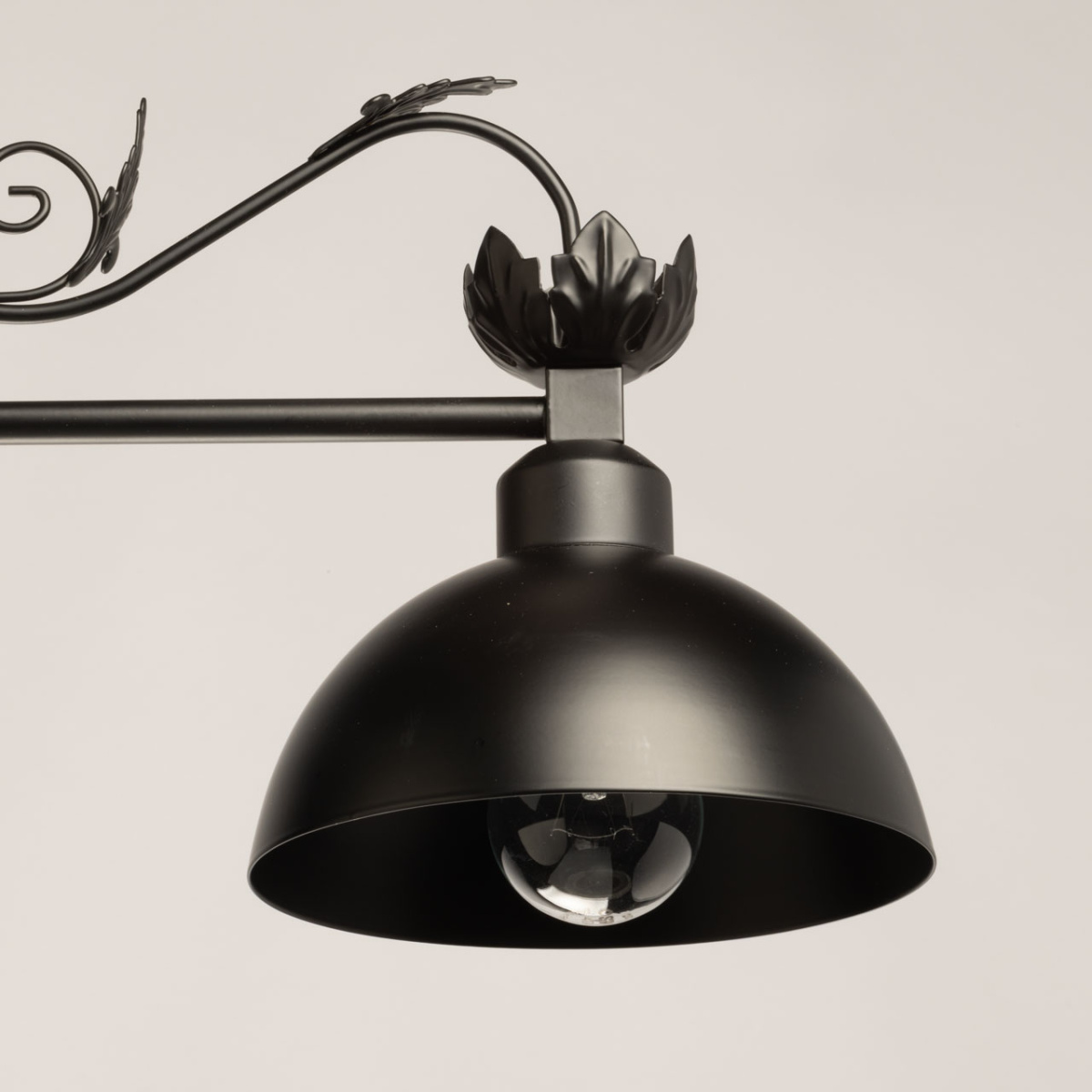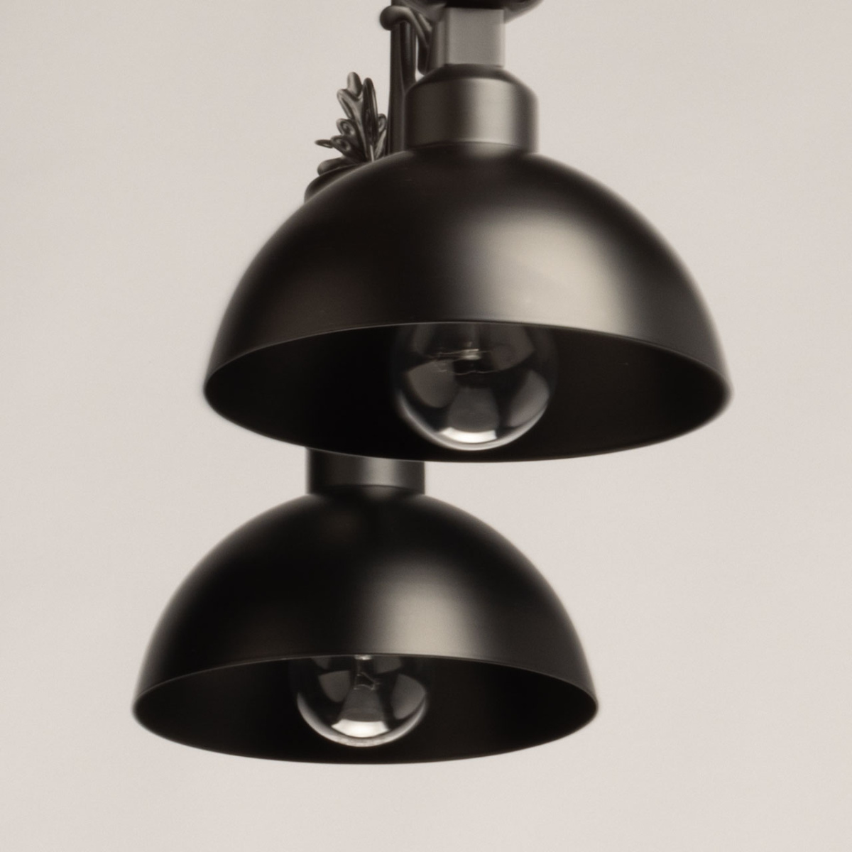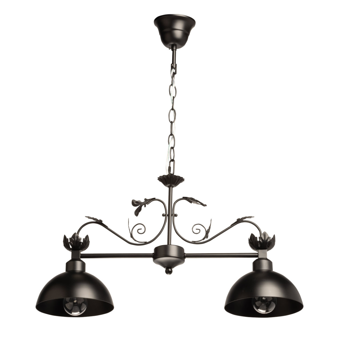 Металлический подвесной светильник идеально подойдет для освещения загородного дома в английском стиле или апартаментов в стиле лофт. Два плафона из металла, окрашенного в черный цвет, закреплены на фигурном кованом основании. В качестве подвеса служит цепь, что позволяет регулировать высоту светильника. Люстра создаст романтическую атмосферу уютным вечером у камина, подойдет для оформления кабинета или библиотеки.