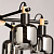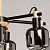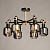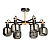 Металлическое основание потолочной люстры окрашено в черный цвет. Стеклянные плафоны отлиты в оригинальную форму и гальванизированы в дымчатый цвет. Потолочная люстра декорирована элементами из натурального светлого дерева.