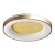 Металлическое основание светильника окрашено в серый цвет. Плафон выполнен из сплава алюминия с цинком и окрашен в цвет золота. Светодиодные источники света закрыты белым матовым акрилом. Потолочная люстра декорирована металлической пластиной цвета золота.