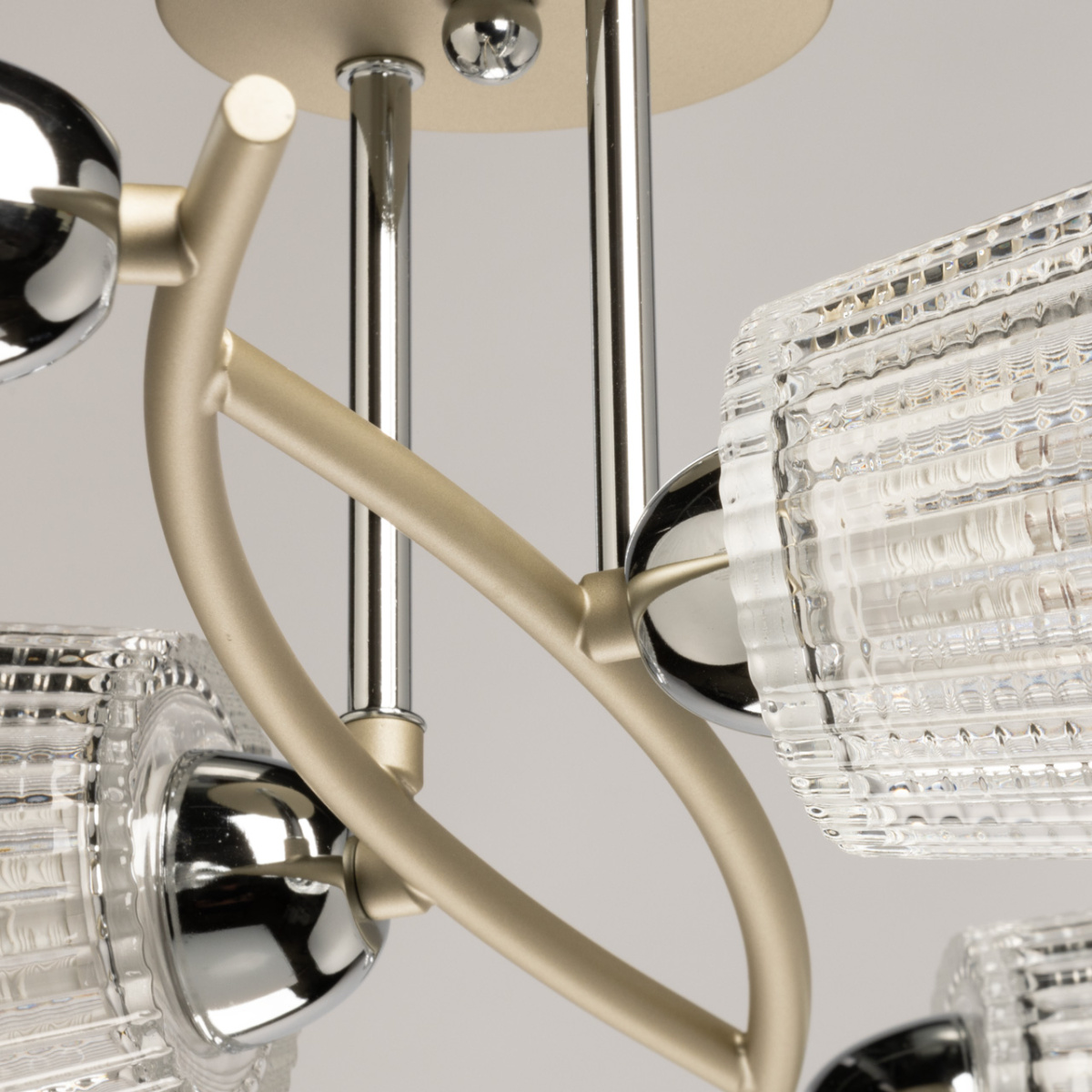 Светильник Торес выполнен с использованием высококачественных материалов, что гарантирует его долговечность и надежность. Основание светильника изготовлено из прочного металла, который подвергся гальванизации в стильном серебряном цвете. Этот процесс не только придает изделию привлекательный внешний вид, но и защищает его от коррозии, что особенно важно для долгосрочной эксплуатации.Штанги светильника хромированы, что добавляет ему современности и элегантности. Такой элемент дизайна идеально вписывается в интерьеры в стилях минимализм, лофт и хай-тек, подчеркивая их чистые линии и простоту форм.Плафоны светильника выполнены из прозрачного стекла, отлитого в форму с фактурой. Это решение не только привносит текстуру в общий дизайн, но и позволяет свету мягко рассеиваться по комнате, создавая уютную атмосферу. Одной из ключевых особенностей светильника Торес является наличие плафонов на шарнирах. Это позволяет изменять направление света, что делает его универсальным инструментом для освещения. Вы можете направить свет на определенные участки комнаты, акцентируя внимание на художественных элементах или функциональных зонах, таких как рабочий стол или зона отдыха.Светильник оснащен цоколем E14, который обеспечивает совместимость с различными типами ламп. Потолочный светильник Торес подходит для освещения помещений площадью до 8 квадратных метров, что делает его идеальным выбором для небольших комнат или локальных зон освещения.