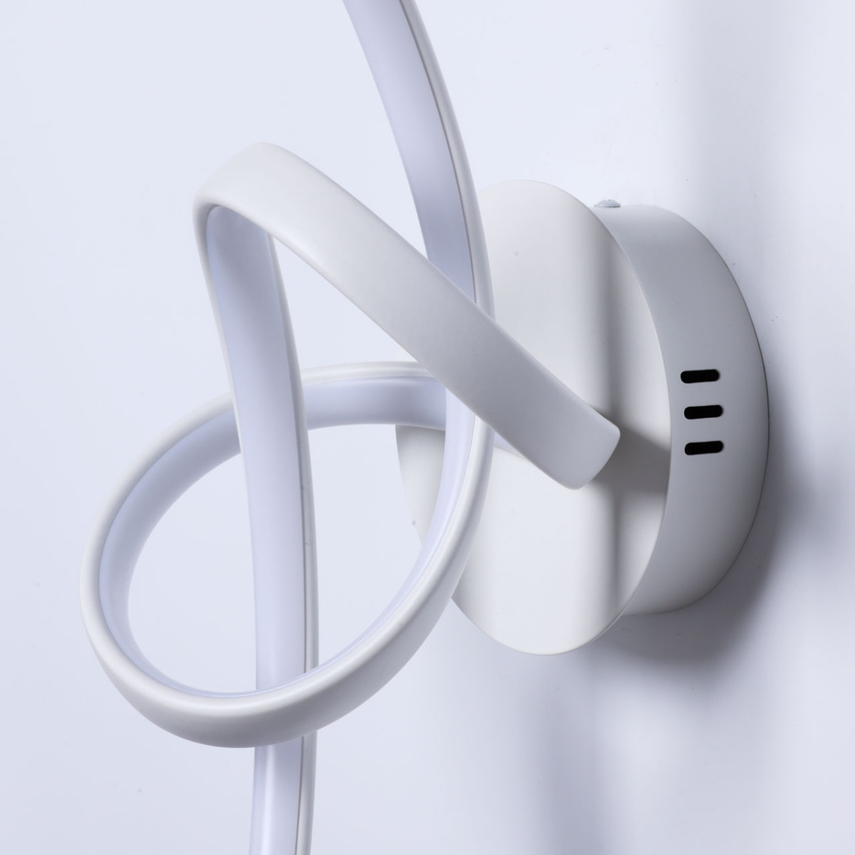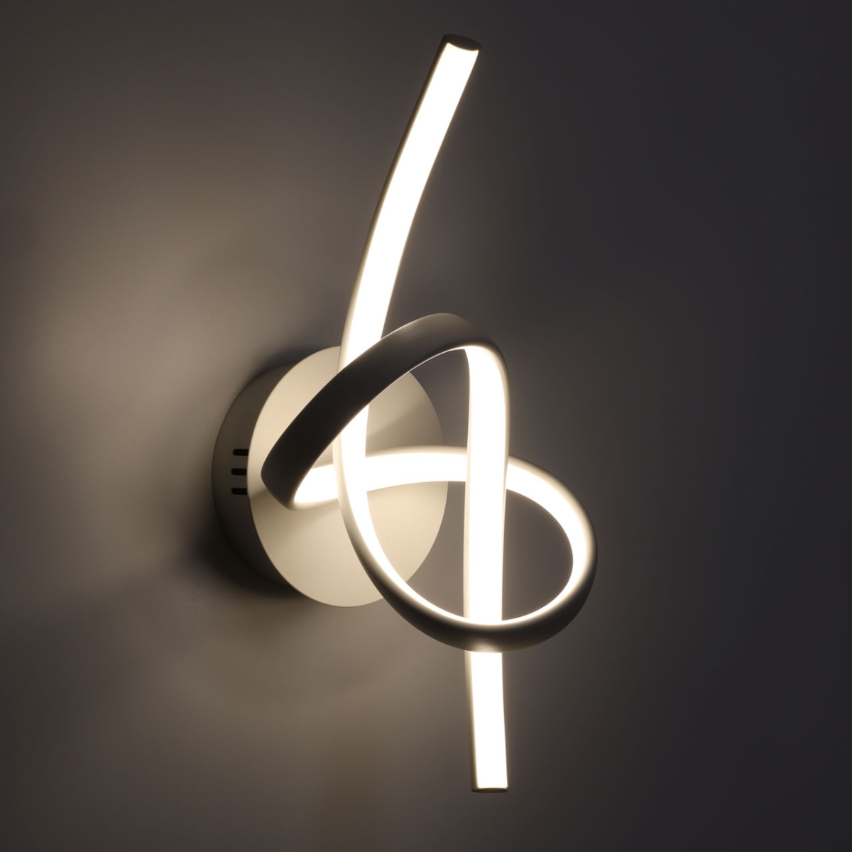 Металлическое основание настенного бра окрашено в белый цвет. Светодиодные источники света закрыты белым силиконом.