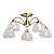 Металлическое основание потолочной люстры гальванизировано в цвет античной бронзы. Люстра декорирована плафонами из прозрачного стекла, матированного по трафарету.