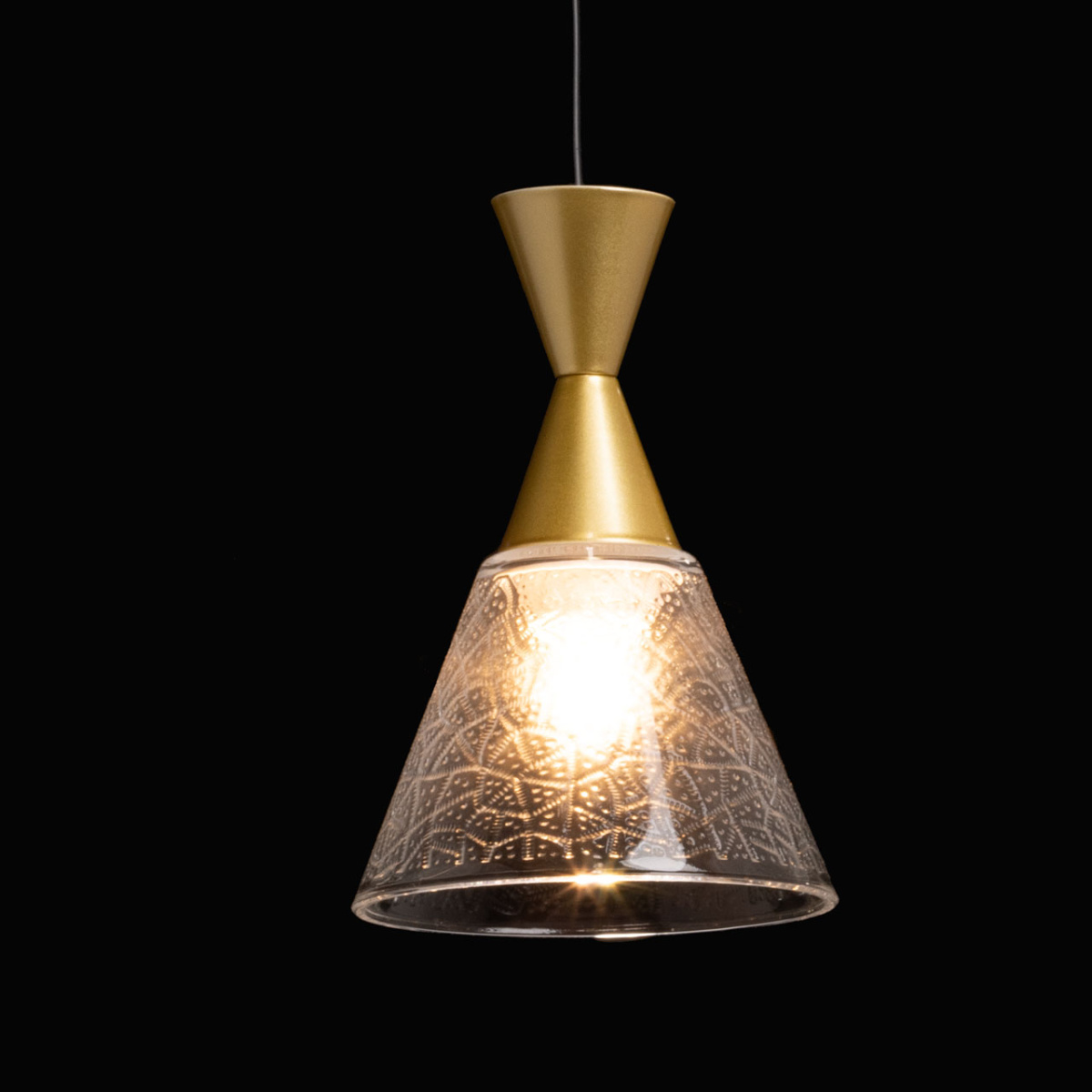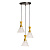 Металлическое основание подвесной люстры окрашено в черный цвет. Отдельные элементы основания и декора окрашены в цвет перламутрового золота. Светильник декорирован матовыми фактурными плафонами с имитацией кожи рептилий.