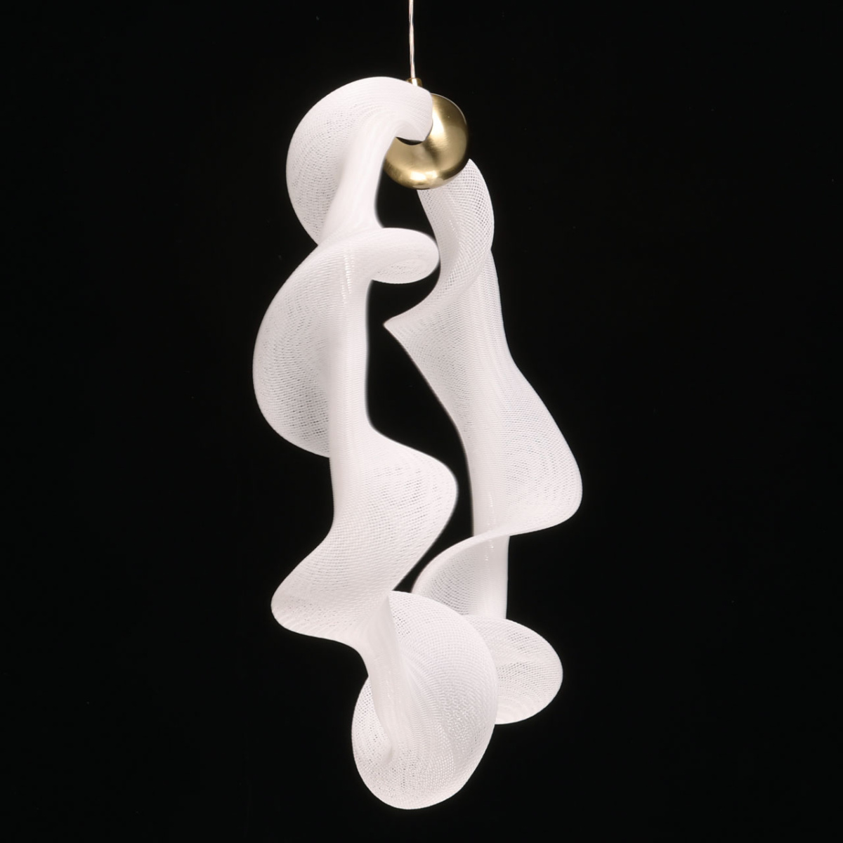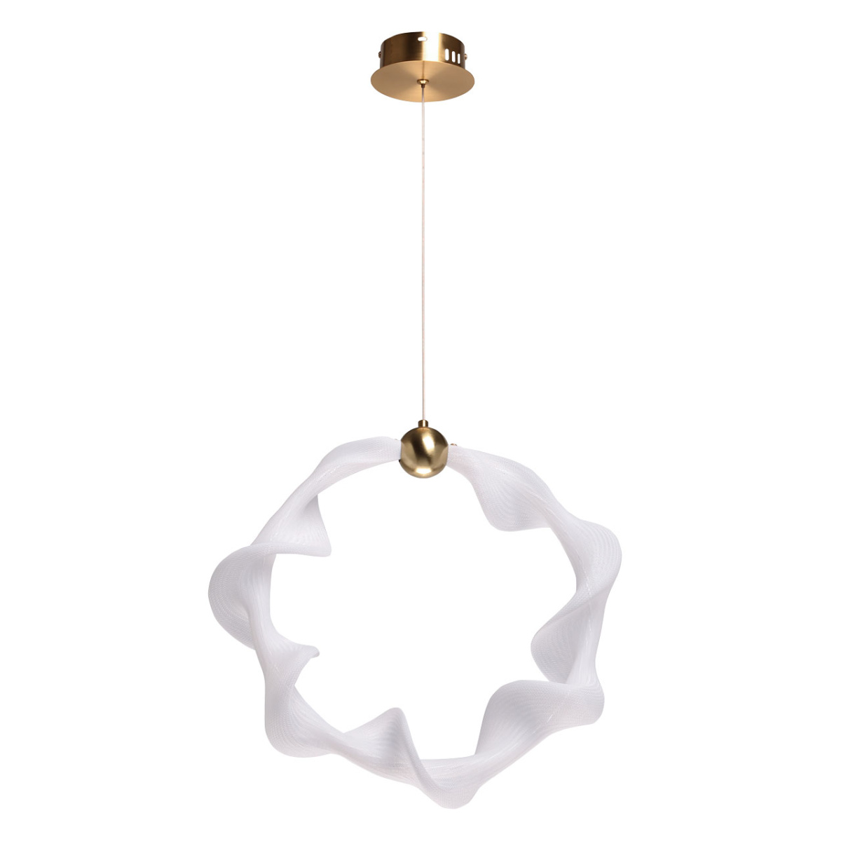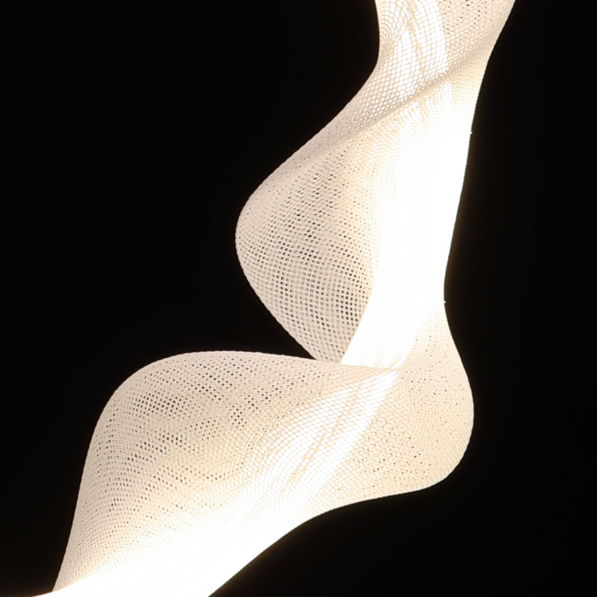 Металлическое основание подвеса гальванизировано в цвет бронзы. Светодиодный источник света закрыт белым матовым акрилом и оригинальным плафоном в виде волны. Волна плафона выполнена из акрила ячеечной структуры.