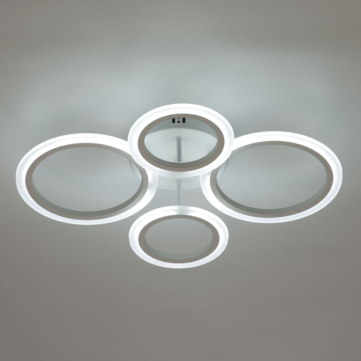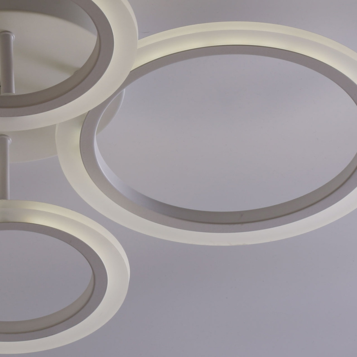 Металлическое основание светильника окрашено в белый цвет. Каркас плафона выполнен из сплава алюминия с цинком и окрашен в цвет основания. Светодиодные источники света закрыты белым матовым акрилом. Светильник приходит в состоянии частичной сборки в компактной упаковке: вся электрика подсоединена, достаточно закрепить плафоны на корпусе.