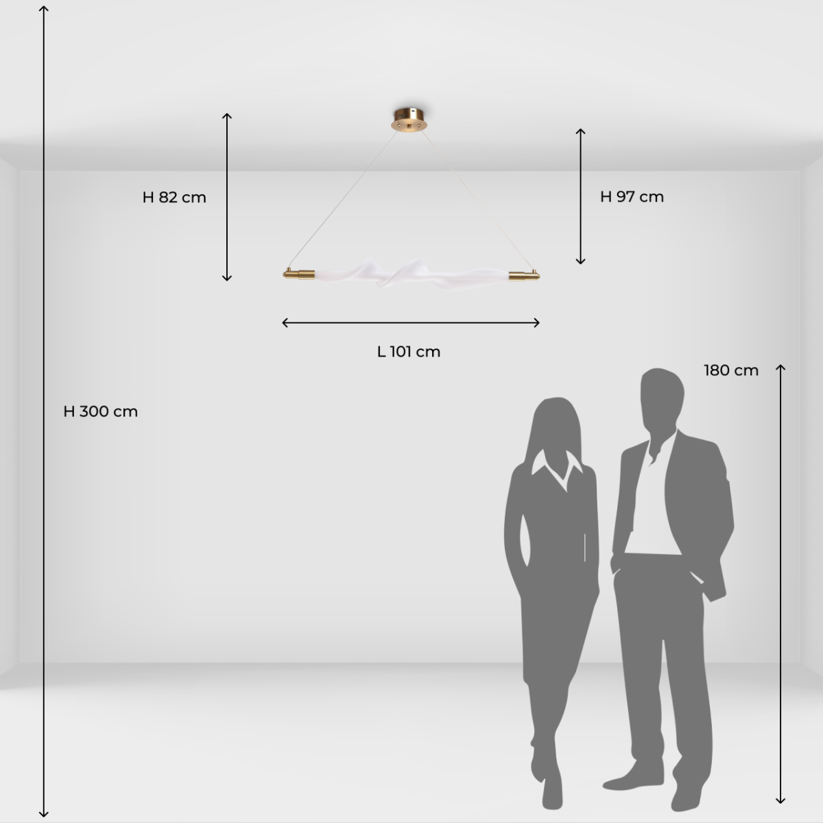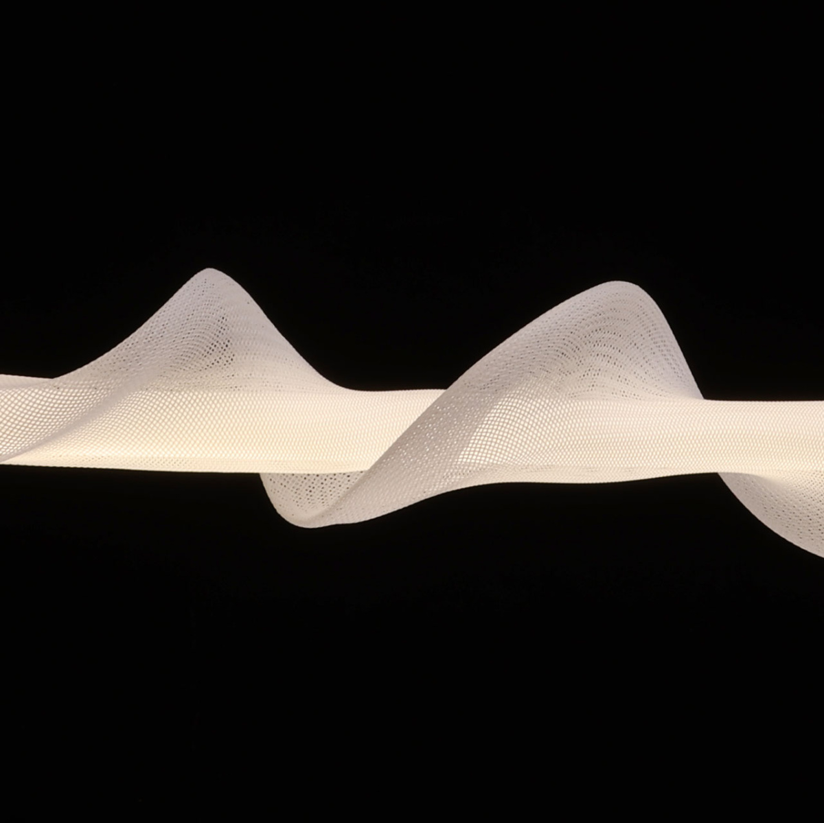 Металлическое основание горизонтальной люстры гальванизировано в цвет бронзы. Светодиодный источник света закрыт белым матовым акрилом и оригинальным плафоном в виде волны. Волна плафона выполнена из акрила ячеечной структуры.