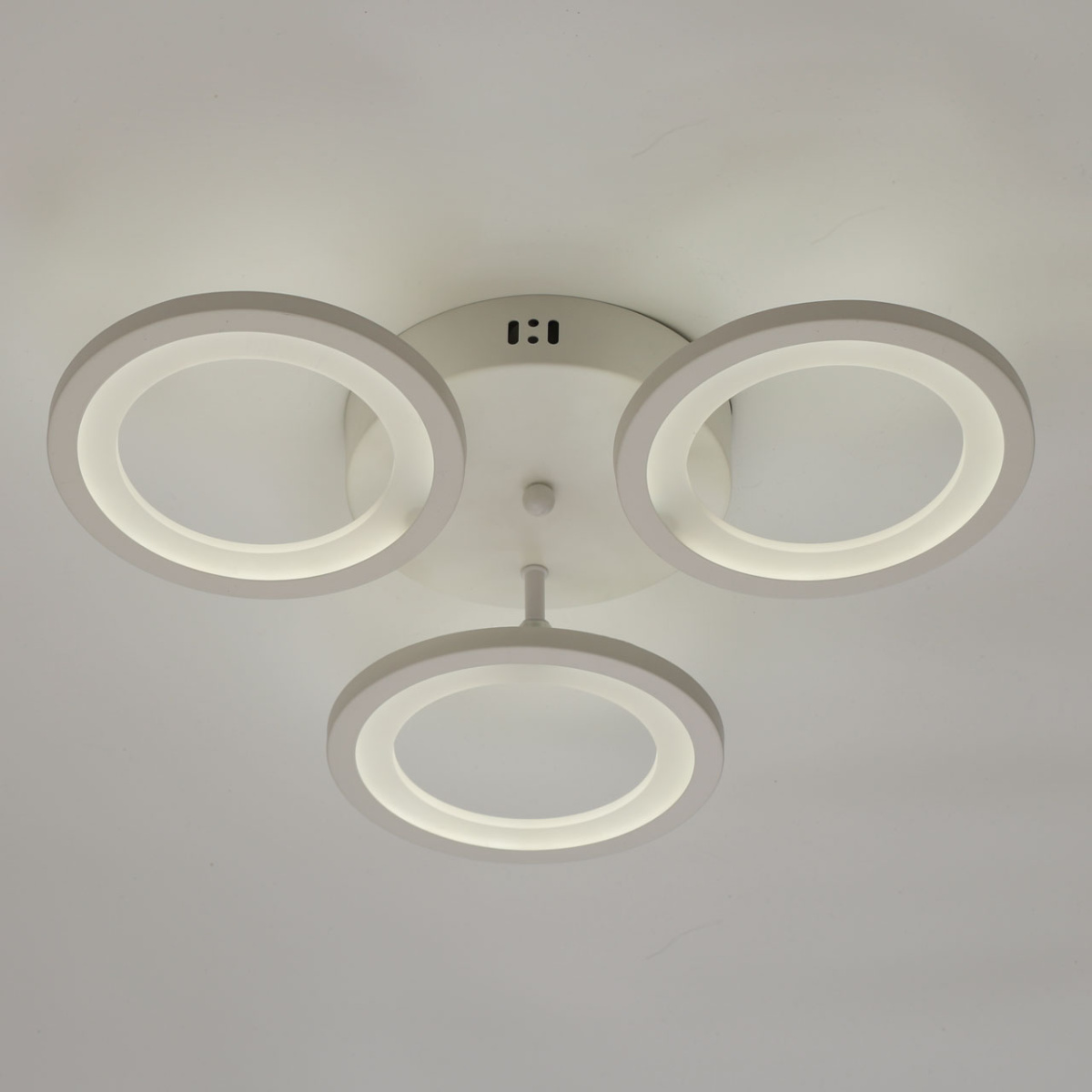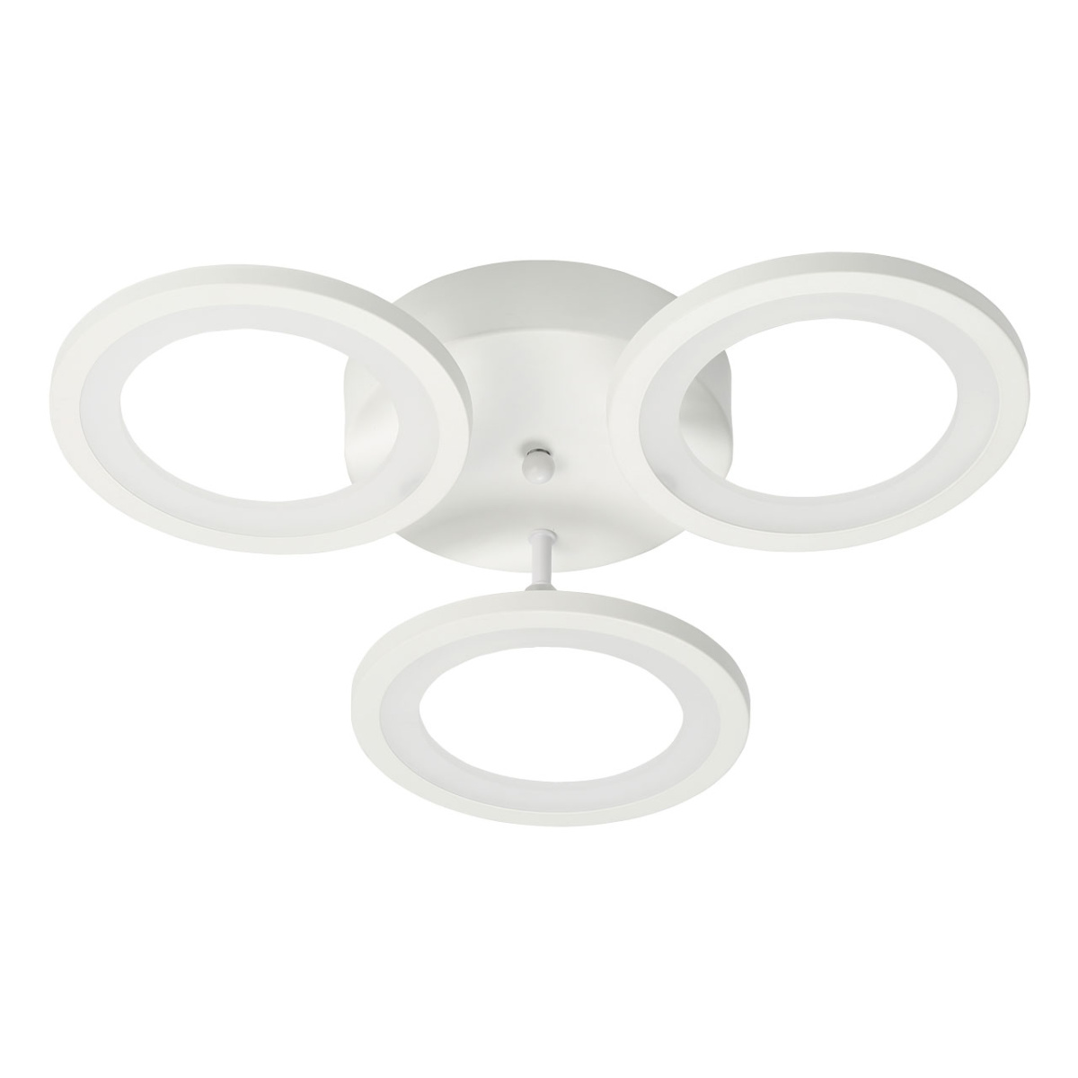 Металлическое основание светильника окрашено в белый цвет. Каркас плафона выполнен из сплава алюминия с цинком и окрашен в цвет основания. Светодиодные источники света закрыты белым матовым акрилом. Светильник приходит в состоянии частичной сборки в компактной упаковке: вся электрика подсоединена, достаточно закрепить плафоны на корпусе.