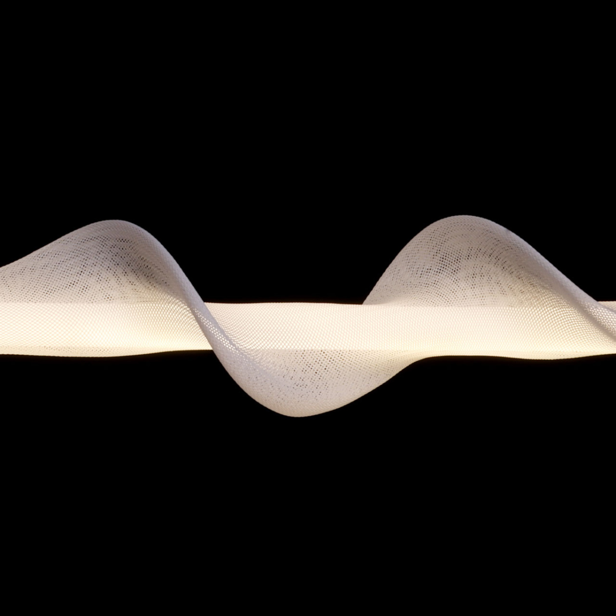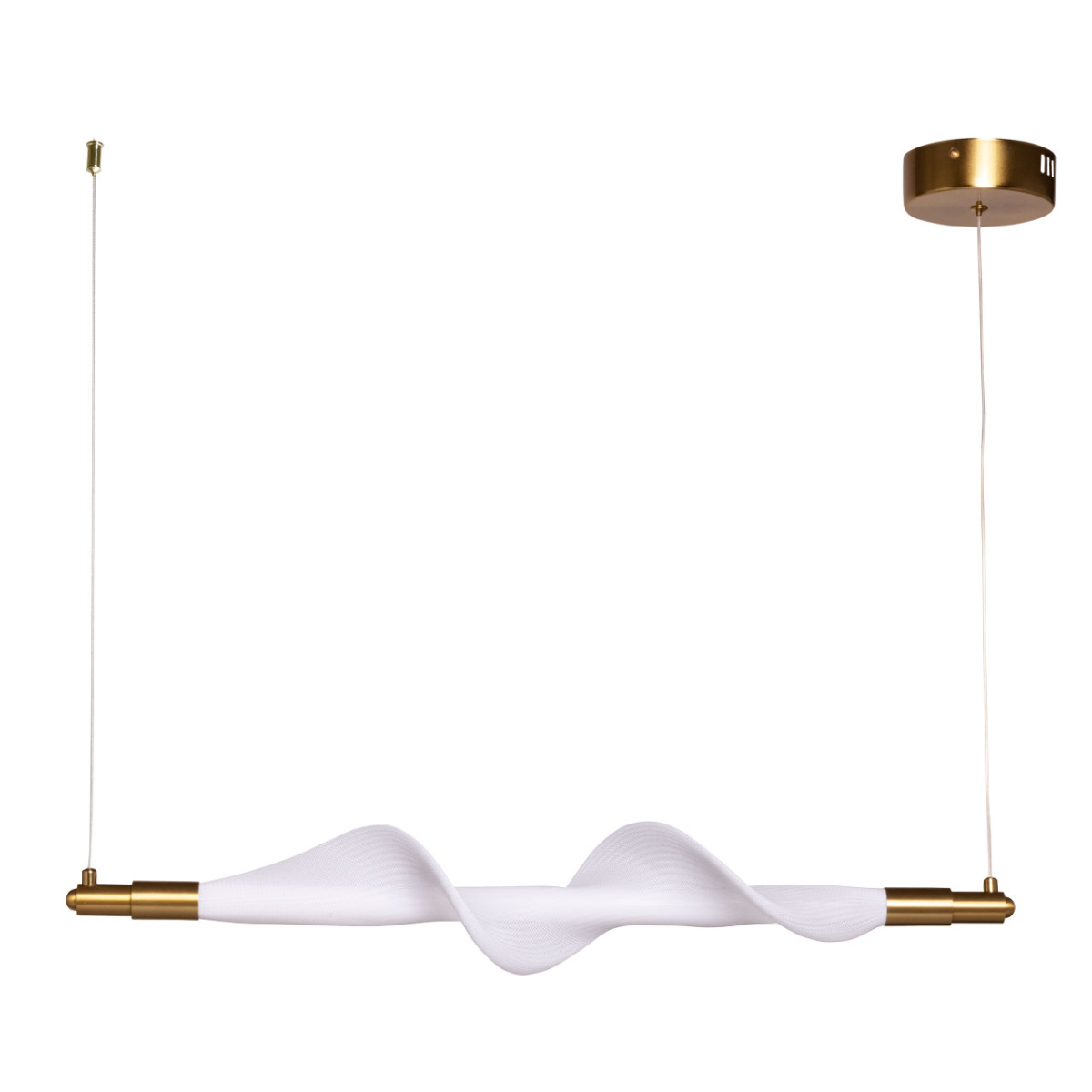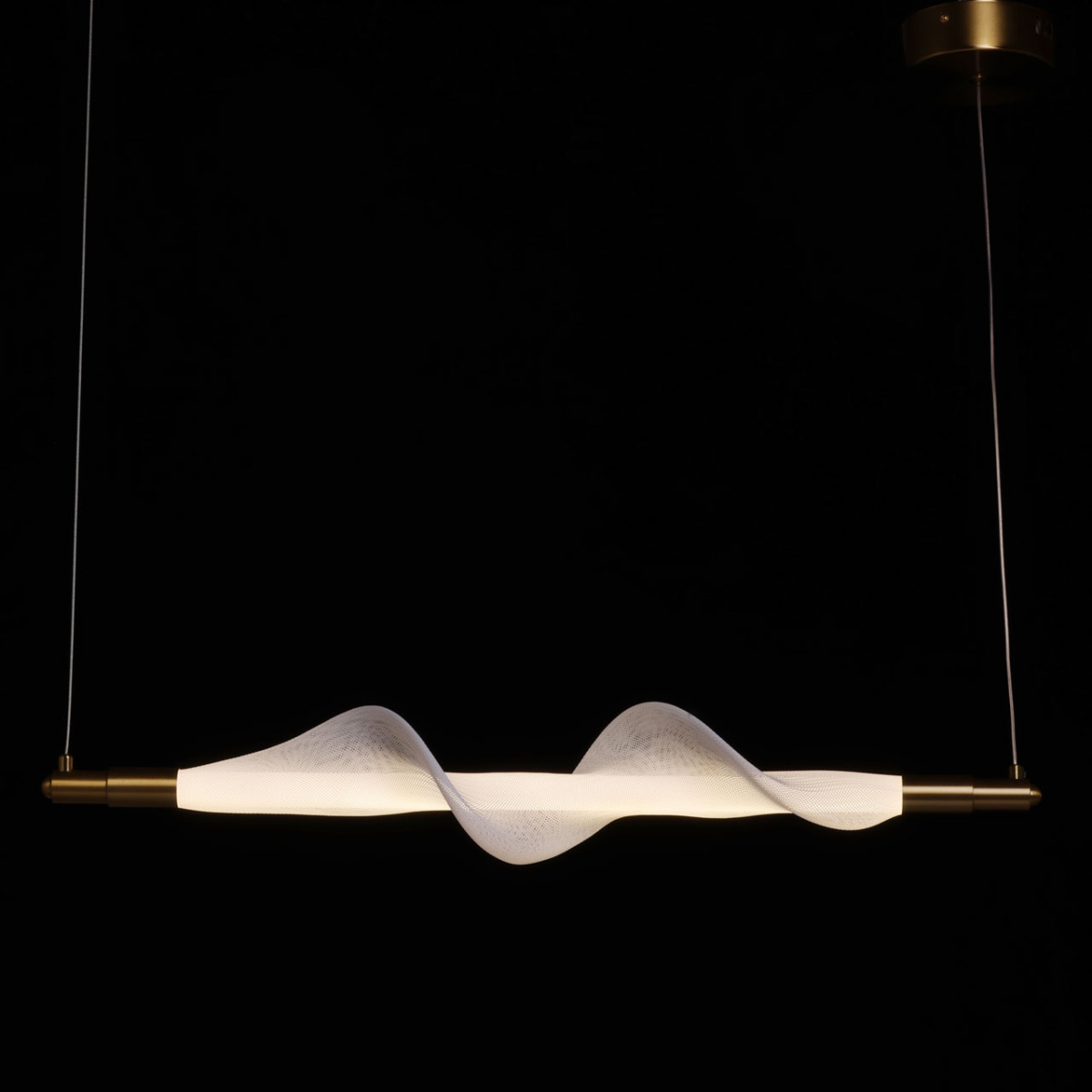 Металлическое основание горизонтальной люстры гальванизировано в цвет бронзы. Светодиодный источник света закрыт белым матовым акрилом и оригинальным плафоном в виде волны. Волна плафона выполнена из акрила ячеечной структуры.