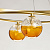 Металлическое основание подвесной люстры гальванизировано в цвет золота. Корпус плафона выполнен из сплава алюминия и окрашен в цвет перламутрового золота. Светодиодный источник света закрыт прозрачным акрилом. Декоративные плафоны с традиционными источниками света G9 выдуваются вручную в форму и окрашены наполовину в цвет янтаря.