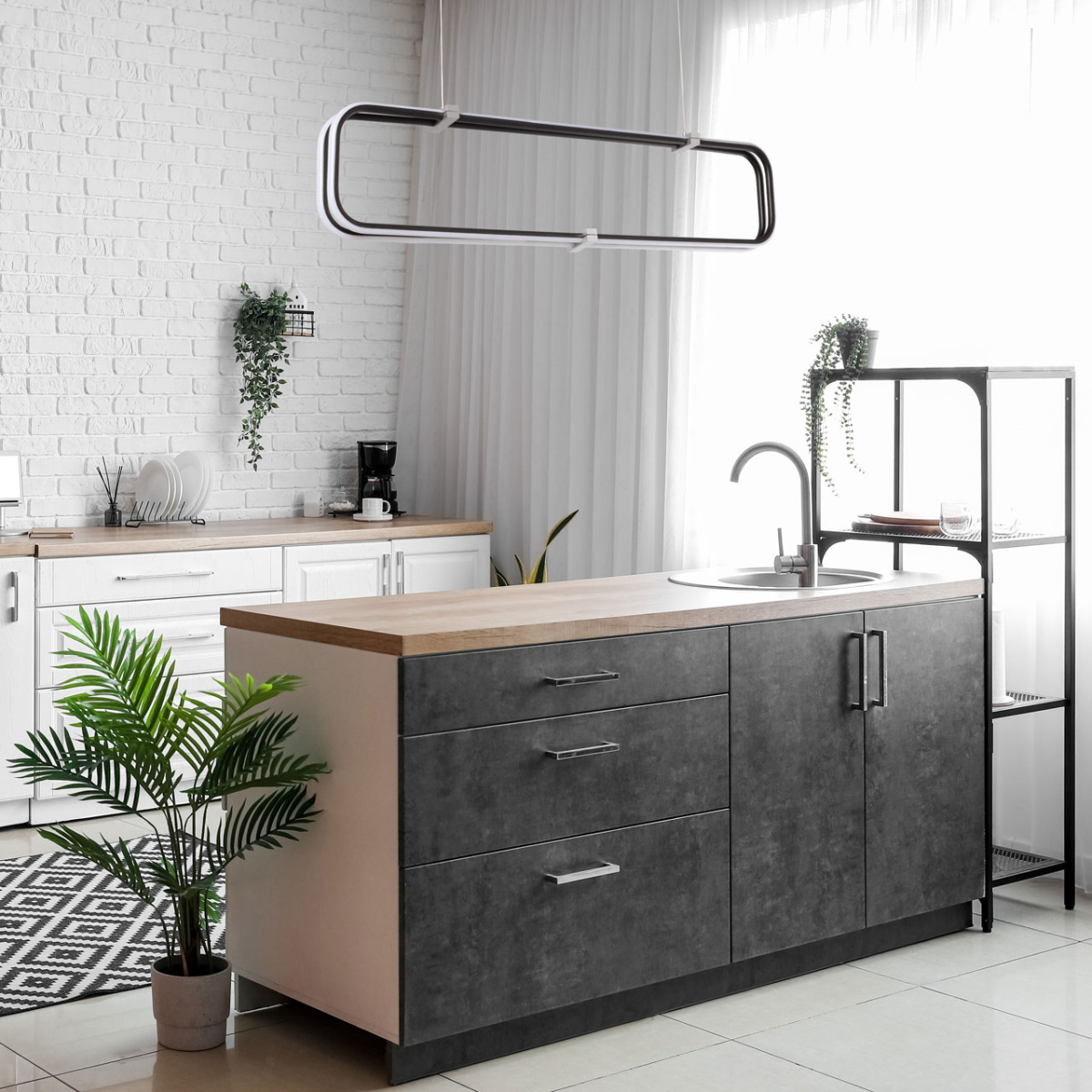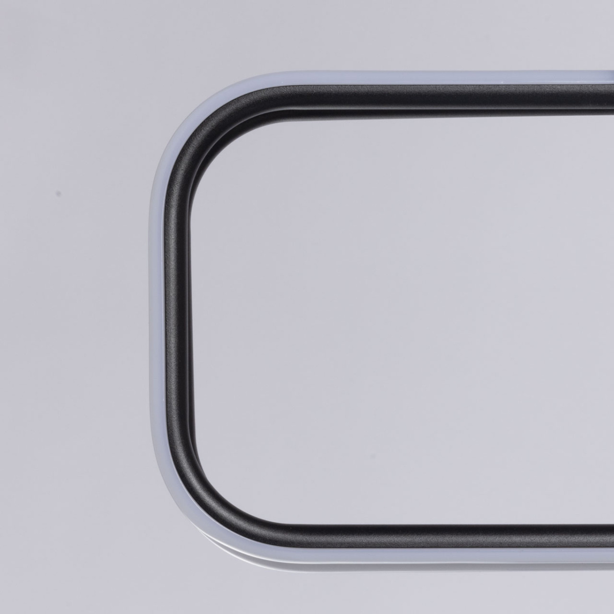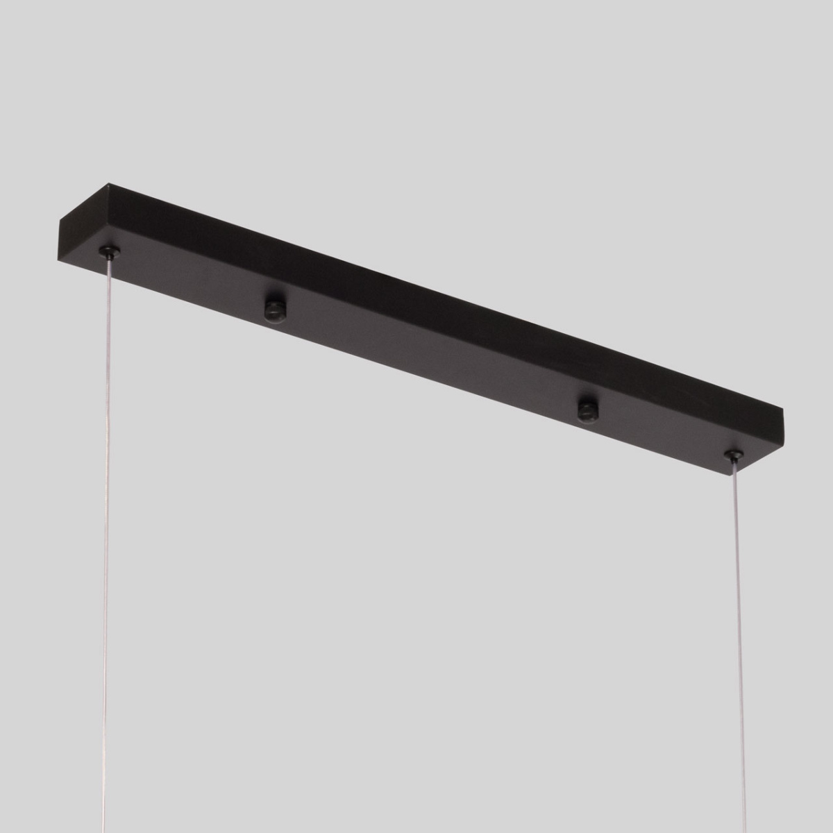 Металлическое основание подвесной люстры окрашено в черный цвет. Корпус плафона выполнен из сплава алюминия с цинком и окрашен в цвет основания. Светодиодные источники света закрыты белым матовым акрилом.
