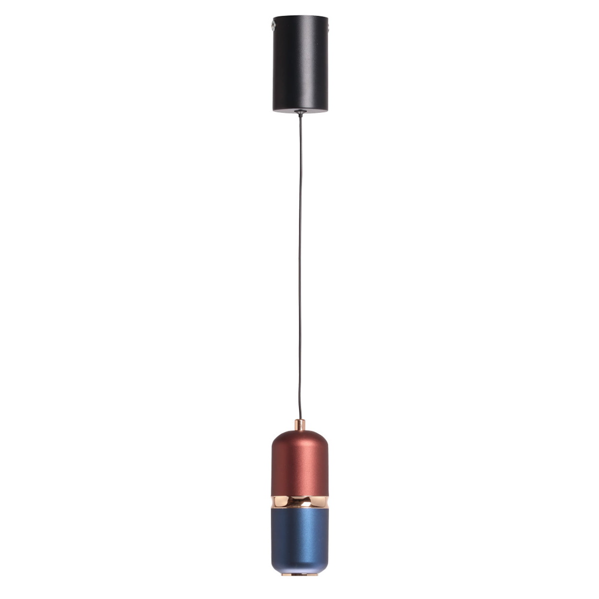 Металлическое основание подвеса окрашено в черный цвет. Корпус плафона выполнен из сплава алюминия и окрашен в синий и коричневый цвета. Отдельные элементы плафона гальванизированы в цвет золота.