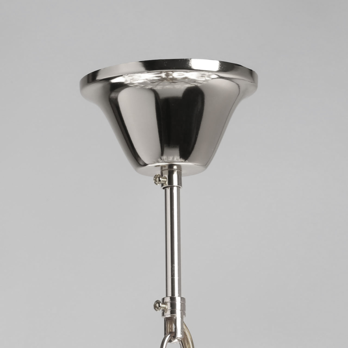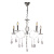 Металлическое основание светильника окрашено в белый цвет. Отдельные элементы основания гальванизированы в цвет хрома. Светильник декорирован выдувным стеклом и подвесками из хрусталя миндалевидной формы.
