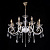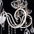 Металлическое основание подвесной люстры окрашено в белый цвет. Отдельные элементы основания гальванизированы в цвет золота. Декоративные розетки и декор центральной оси выполнены из прозрачного стекла. Люстра декорирована подвесками из прозрачного хрусталя.