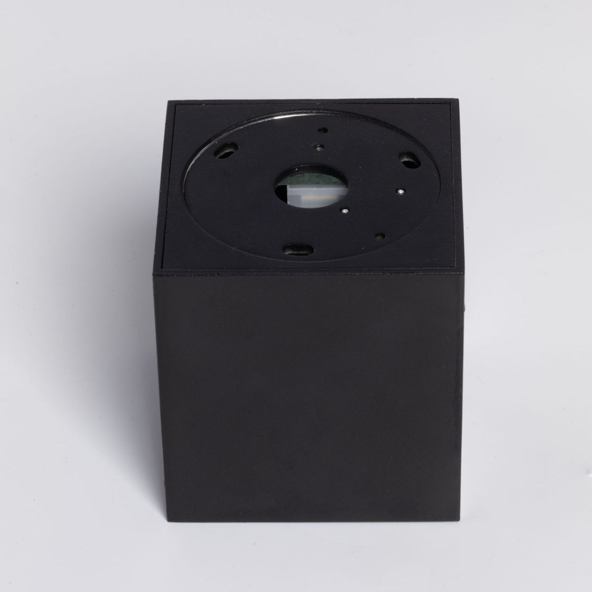 Металлическое основание окрашено в черный цвет. Плафон отлит из высокотехнологичного термоакрила черного цвета.
