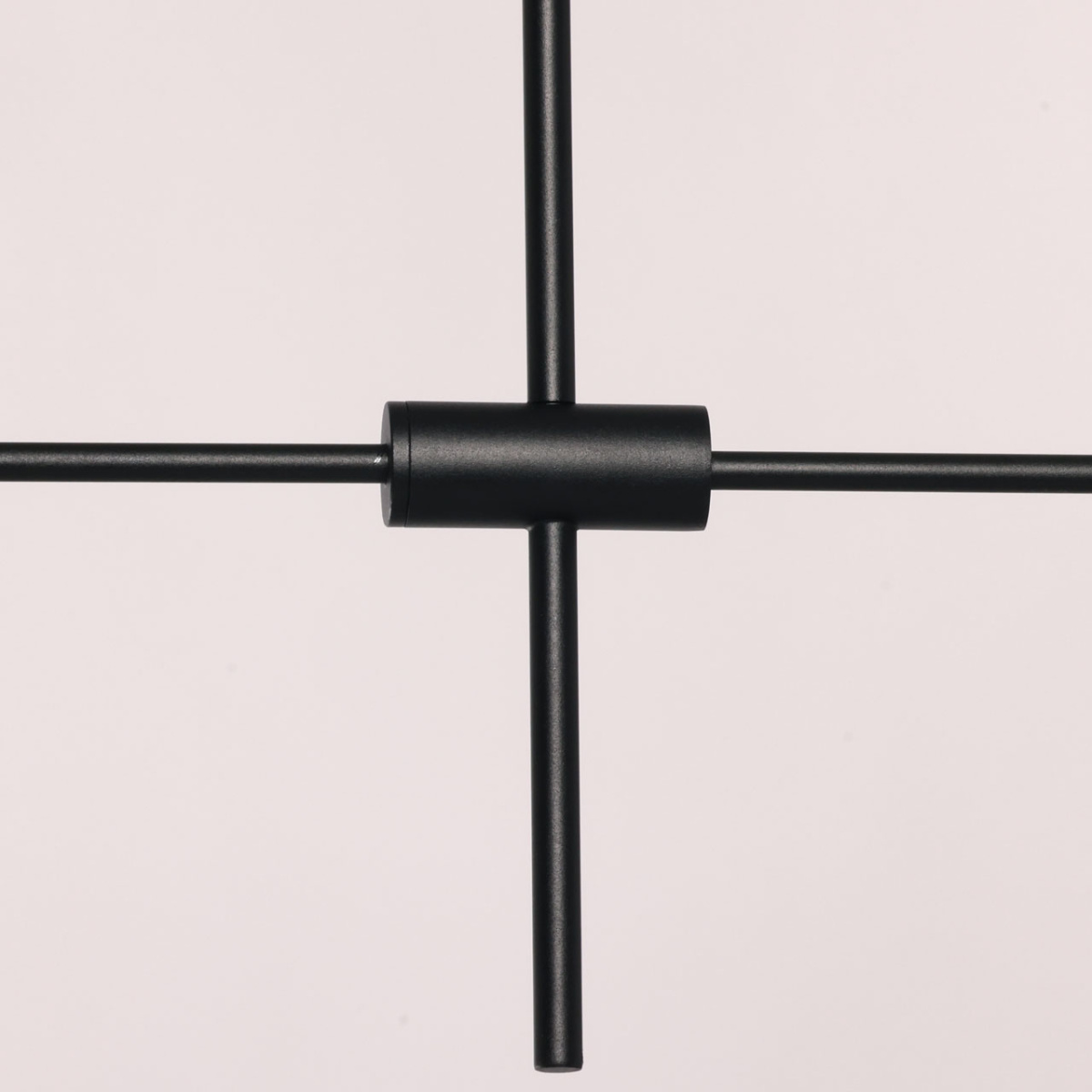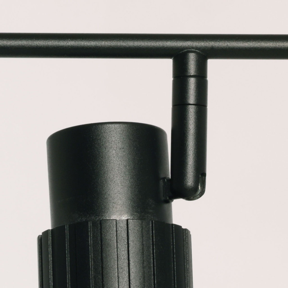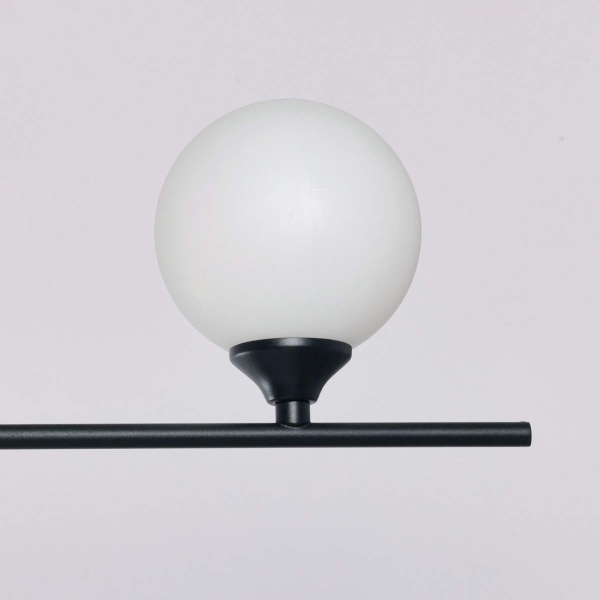 Металлическое основание подвесного светильника окрашено в черный цвет. Корпус плафонов спотов выполнен из сплава алюминия и окрашен в цвет основания. Светодиодный источник света закрыт декоративным плафоном из белого матового акрила.