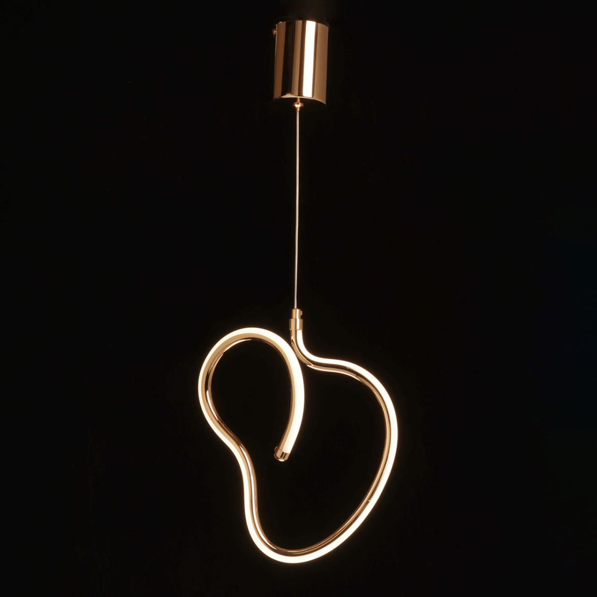 Металлическое основание подвеса гальванизировано в цвет французского золота. Корпус плафона выполнен из акрила и гальванизирован в цвет основания. Светодиодные источники света закрыты белым матовым силиконом.