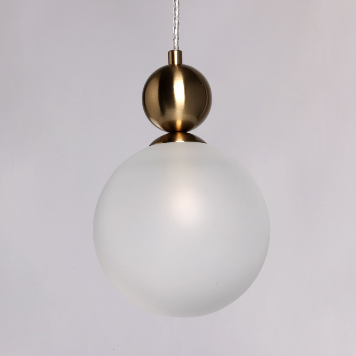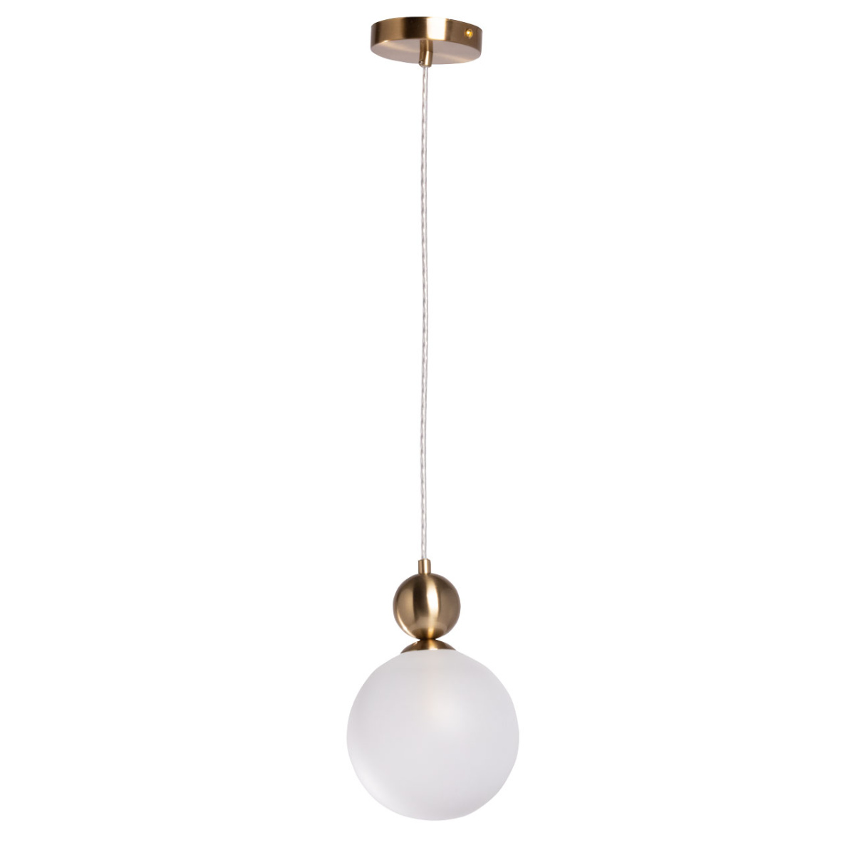 Металлическое основание подвеса гальванизировано в цвет медовой бронзы. Источник света закрыт белым стеклянным плафоном.