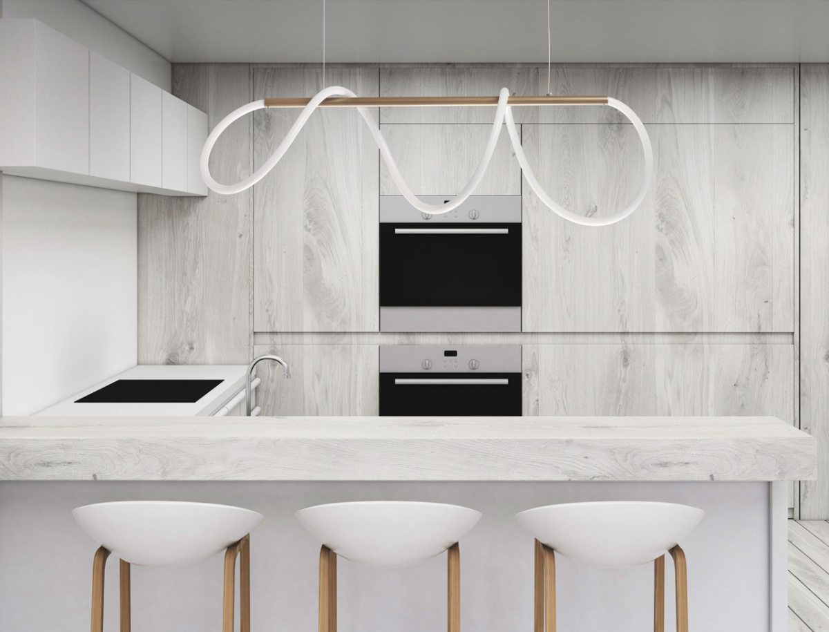 Металлическое основание светильника окрашено в цвет перламутрового золота, матировано. Гибкий плафон выполнен из белого матового силикона.