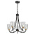 Металлическое основание окрашено в черный цвет. Отдельные элементы основания гальванизированы в цвет бронзы. Светильник декорирован плафонами из прозрачного фактурного стекла.