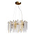 Металлическое основание подвесного светильника гальванизировано в цвет латуни. Люстра декорирована фактурными стеклянными пластинами прозрачными и цвета шампань.