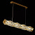 Основание подвесной люстры выполнено из нержавеющей стали и гальванизировано в цвет золота. Люстра декорирована прозрачным хрусталем прямоугольной формы.