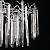 Металлическое основание подвесной люстры окрашено в цвет перламутрового серебра. Люстра декорирована прозрачными стеклянными подвесками и подвесками, окрашенными в белый цвет.