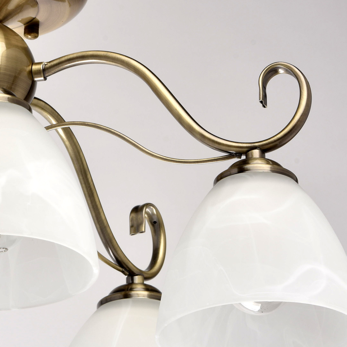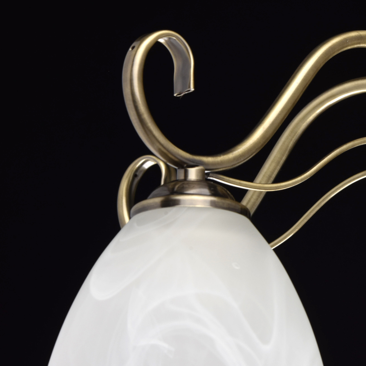 Основание: металл, гальванизирован в цвет античной бронзы.Плафоны: алебастровое стекло, отлито в форму; матирование.