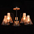 Металлическое основание потолочной люстры окрашено в черный цвет. Стеклянные плафоны отлиты в сложную форму и гальванизированы в цвет шампань. Светильник декорирован элементами из натурального светлого дерева.
