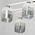 Металлическое основание потолочного светильника окрашено в белый цвет. Отдельные элементы гальванизированы в цвет хрома. Стеклянные плафоны гальванизированы в дымчатый цвет и окрашены в белый цвет в виде параллельных полос