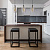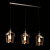Металлическое основание подвесной люстры окрашено в черный цвет. Отдельные элементы основания гальванизированы в цвет латуни. Прозрачные стеклянные плафоны отлиты в сложную форму.
