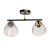 Металлическое основание потолочной люстры окрашено в черный цвет. Отдельные элементы основания гальванизированы в цвет золота. Потолочный светильник декорирован плафонами из прозрачного фактурного стекла.
