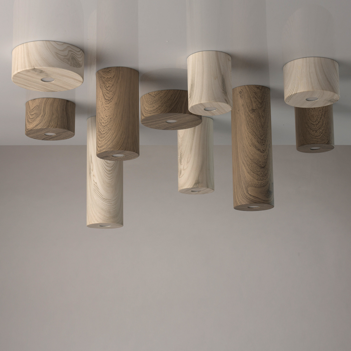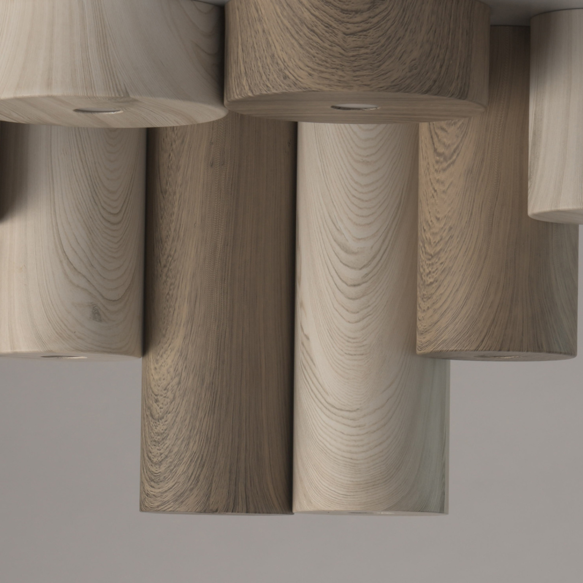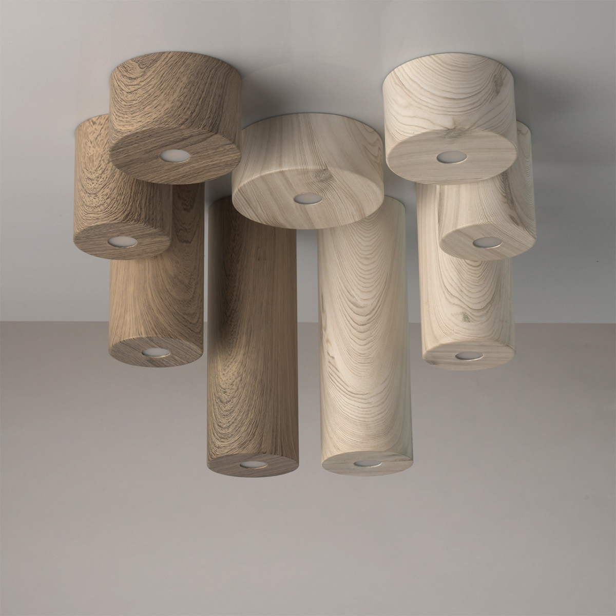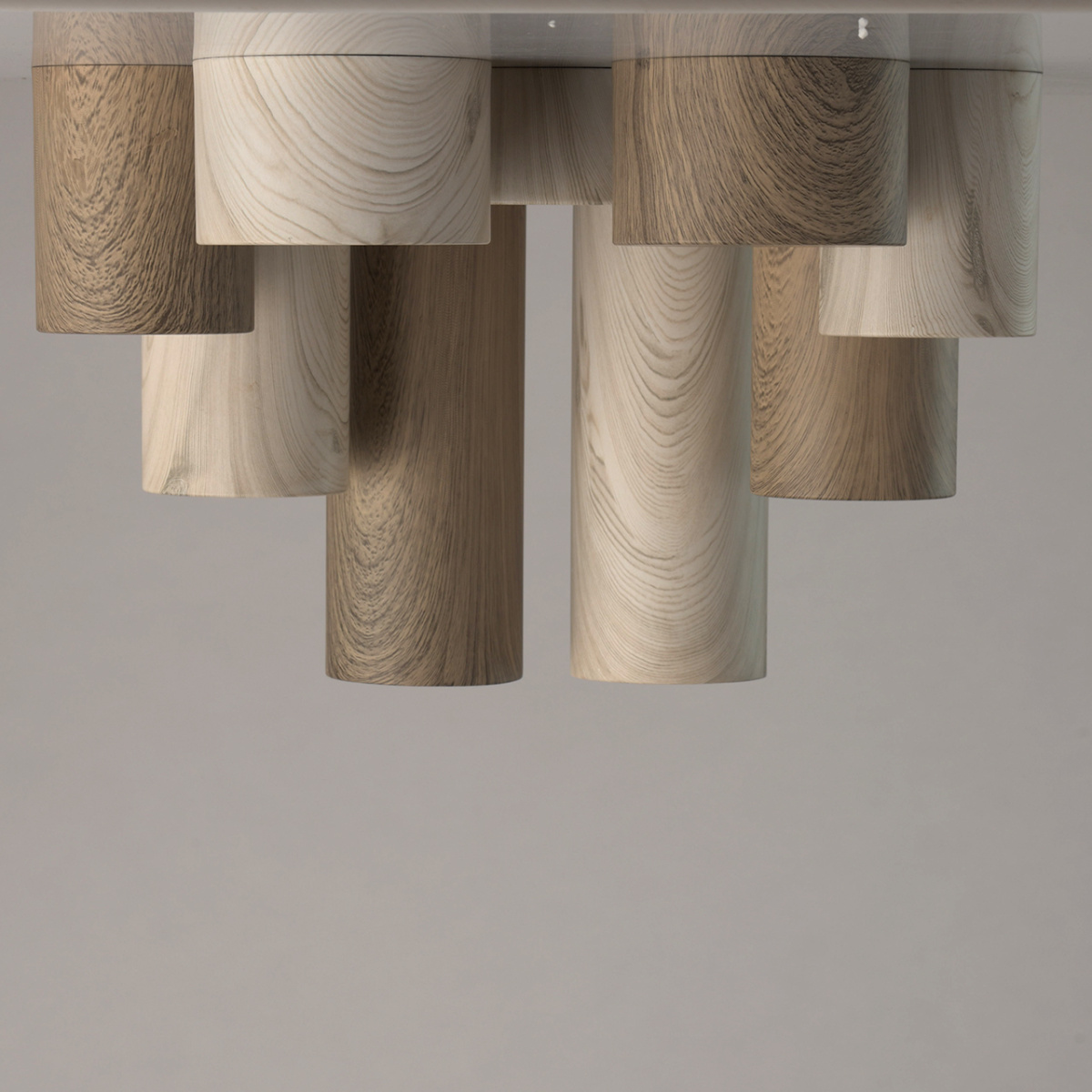 Основание светильника выполнено из металла, рисунок структуры белого дуба нанесён по технологии плёночного окрашивания. Светодиодный источник света типа COB закрыт рассеивателем из белого матового акрила.