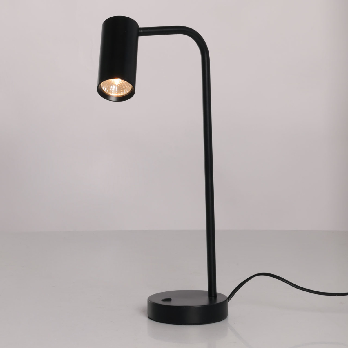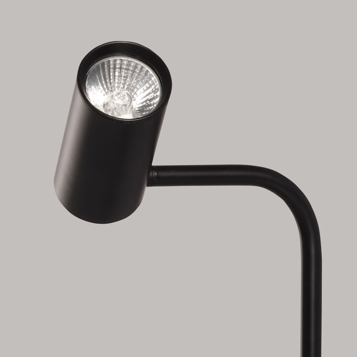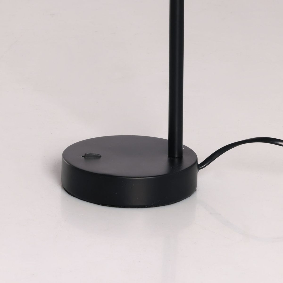 Металлическое основание настольной лампы окрашено в черный цвет. Корпус плафона выполнен из сплава алюминия и окрашен в цвет основания.